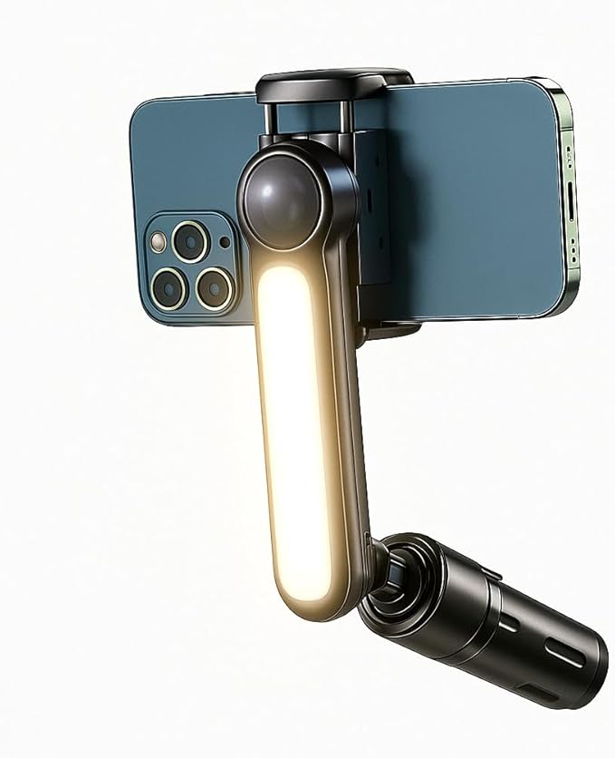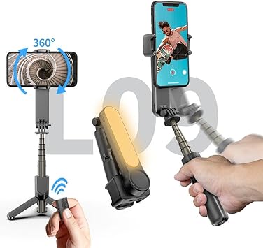 Akıllı Telefonlar İçin Gimbal Stabilizator Kendinden Işıklı Ultra Hafif 360 Derece Dönebilen Başlık Android ve iPhone Katlanabilir Video Kaydı için Sabitleyici L09
