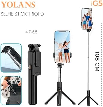 – Model G5 selfie çubuğu yerleşik bir standa sahiptir, 4,7-6,5 inç ekranları destekler, yerleşik uzaktan kumandaya sahiptir, stand 108CM’ye kadar tamamen uzatılabilir.