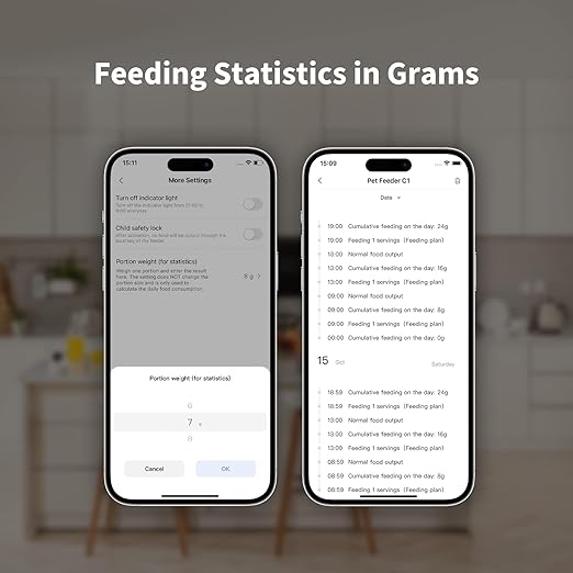 [Birden fazla kontrol yöntemi] Sahneyi Aqara Home uygulamasında ayarladıktan sonra, evden yüzlerce kilometre uzakta olsanız bile yem otomatınızı C1 kontrol edebilir veya Siri, Alexa veya Google Assistant ile sesli komutla kontrol edebilirsiniz. (*Lütfen dikkat: Bu cihaz HomeKit veya Alexa ile uyumlu değildir. Ancak Aqara Home sahneleri sayesinde dil ile kontrol edilebilir). Yem otomatı C1 besleme planlarını ve zaman planlarını destekler.