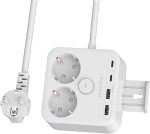Akım Korumalı 2’Li Priz, Çocuk Korumalı ve Isıya Dayanıklı Yapı, 2x Usb 2x Usb A Girişli Tasarruflu Adaptör, 2 Metre Uzatma Kablosu