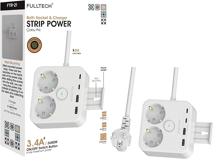 Ürün : 3.4A Çıkışlı, 2xUSB-A ve 2xAC Prizli Adaptör