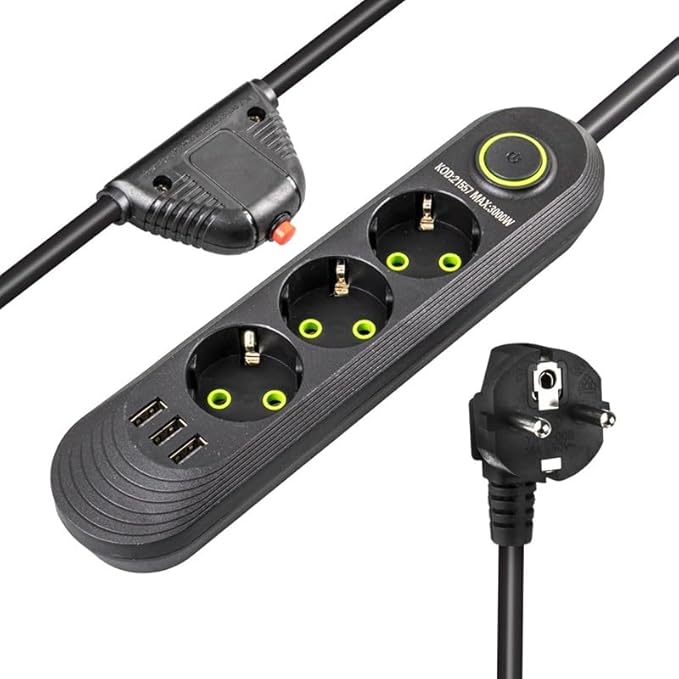Akım Korumalı Grup Priz, 3’lü Priz,1.5 Metre Kablolu, 3 Usb’li 3000w, 16 Amper, Kablo Üstünde Termal Koruma Sigortalı, Çocuk Korumalı, Topraklı (SIYAH-3)