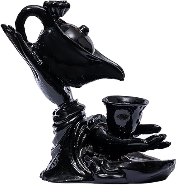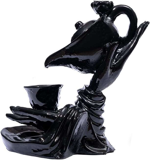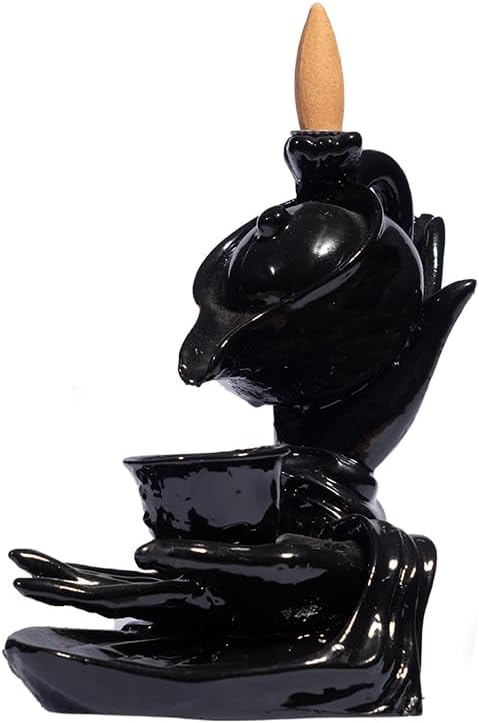 Akış Tütsülük Sarawasti Heykel – Seramik, Parlak Siyah | 2 Adet Lavanta Konik Tütsü Hediyeli, Yoga/Ofis/Ev Dekorasyon