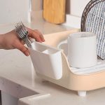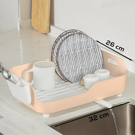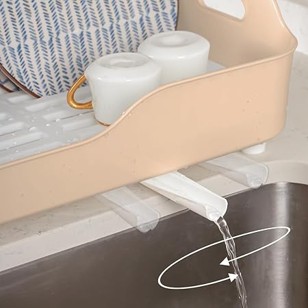 AKL-060 Bej Lüks Tabaklık Bulaşıklık-Yönlendirilebilir Su Akıtma Kanallı Bulaşık Sepeti-Kaşıklıklı