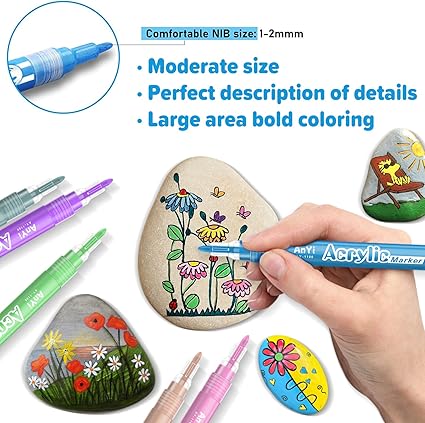 【ÇOK YÜZEYLER İÇİN ÇALIŞMA】Su bazlı orta noktalı işaretleyici kalem profesyonel kalitede, su geçirmez, hızlı kurur ve canlı renklerle suya dayanıklıdır. Akrilik kanvas kalemler mükemmel opaklıkla sorunsuz bir şekilde akar. Seramik, ahşap, tuval, taş, plastik, cam vb. Üzerine zahmetsizce yazabilmeniz için neredeyse her yüzeyde sanat eseri oluşturmak veya oluşturmak için harikadır