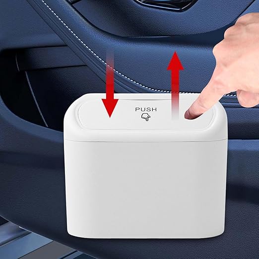 KOMPAKT TASARIM: Araç içi kullanıma uygun, taşınabilir ve şık tasarıma sahip mini çöp kutusu