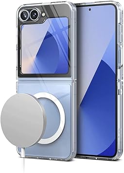 AKSESUAR Samsung Galaxy Z Flip 6 için Magsafe ile Uyumlu Arka Kısmı Şeffaf Kenarları Silikon Yapılı Güçlendirilmiş Mıknatıslı Wireless Kablosuz Şarj Destekli Kılıf