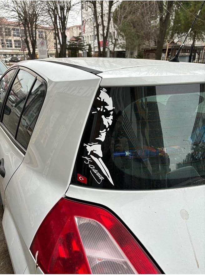 Aksesuar Sticker Beyaz Folyo Atatürk Silüeti Ve ImzasıAksesuar Sticker Beyaz Folyo Atatürk Silüeti Ve Imzası