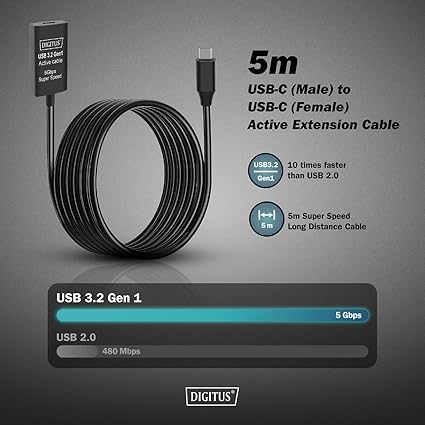 Menzil: 5 metre uzunluğu ile aktif tekrarlayıcı kablosu uzun mesafelerde sağlam ve kayıpsız bağlantı sağlar – ev ofis ve profesyonel uygulamalar için mükemmeldir