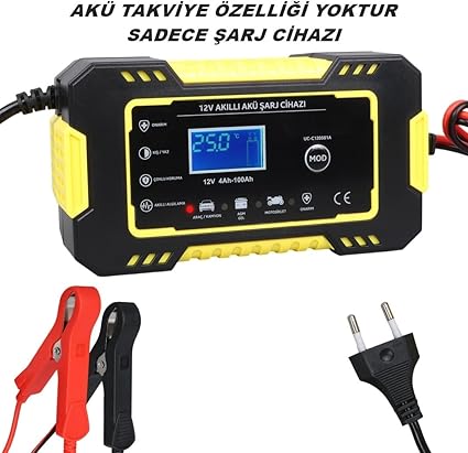 Akü Şarj Cihazı Göstergeli JEL Asitli Sulu Kuru Tip Akülere Uygun Battery Charger (TAKVİYE ÖZELLİĞİ YOKTUR) (YELLOW)