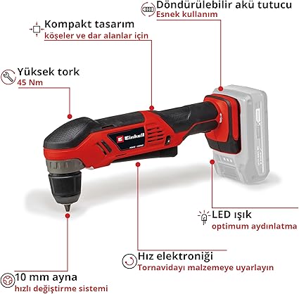 Akü dahil değildir – Einhell Akülü Açılı Vidalama TE-AD 18 Li-Solo, Power X-Change akü ve şarj cihazı olmadan teslim edilir Bunlar ayrıca satın alınabilir