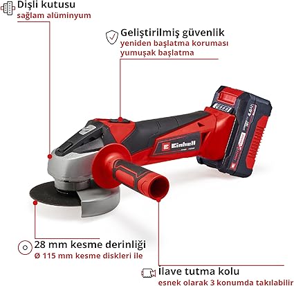 Kesme diski dahil değildir – Avuç taşlama makinesi kesme diski olmadan verilir. 115 mm’ye kadar çapta kesme diskleriyle 28 mm’ye kadar kesme derinliğine kadar kullanılabilir.