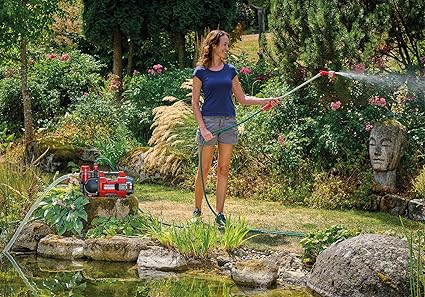 Performans – Akülü bahçe pompası, saatte 3.000 litre suyu pompalayabilir, maksimum 28 metreye kadar basma yüksekliği (maks. 2,8 bar) ve 6 metreye kadar emiş yüksekliği sunar.