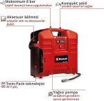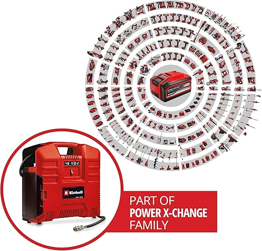 Power X-Change – Einhell TE-AC 36/8 Li OF Set-Solo akülü çanta tipi kompresör, akülerin, şarj cihazlarının ve sistem cihazların esnek bir şekilde birleştirildiği Power X-Change ailesinin bir parçasıdır.