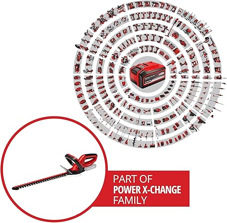 Akü dahil değildir – Einhell Akülü Çit Budama GC-CH 1846, Power X-Change akü ve şarj cihazı olmadan teslim edilir. Bunlar ayrı olarak temin edilebilir.