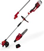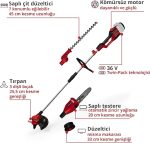 Einhell Akülü Çok Fonksiyonlu Budama GE-LM 36/4in1 Li-Solo, Einhell Power X-Change serisinin bir parçasıdır. Kombine alet testere, çit budama, bıçak ve misinayı birleştirir.