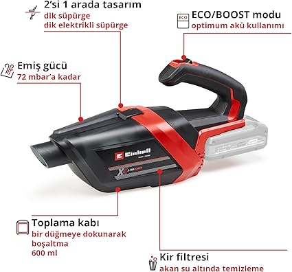 Akü dahil değildir – Einhell TE-HV 18/06 Li-Solo akülü el süpürgesi, Power X-Change akü ve şarj cihazı olmadan gönderilmektedir. Bunlar ayrıca satın alınabilir.