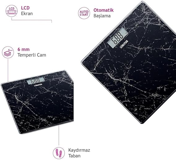 Al 808 Sm Mermer Desenli Dijital Baskül Ve Vücut Tartısı, Standart