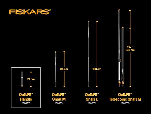 İçerik: 1x Fiskars QuikFit Sap, Uzunluk: 24 cm, Ağırlık: 95 g, Malzeme: Sertleştirilmiş alüminyum, Renk: Siyah/Turuncu, 1000663