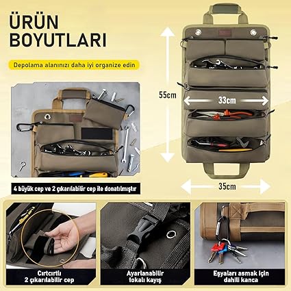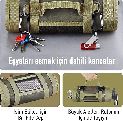 Alet Çantası, Ağır Hizmet Tipi Kanvas Rulo Takım Çantası, Katlanabilir Alet Organizer El Çantası, Tamirci Marangoz Teknisyen Hobici Takım Çantası, Alet Takım Anahtar Düzenleyici Çanta Haki