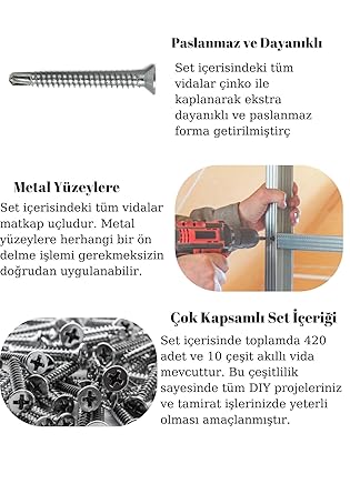 All Essential Fasteners 420’li Akıllı Havşa Başlı Vida Seti–10 Çeşit Matkap Uçlu –takım Çantalı Akıllı Vida Seti
