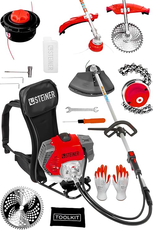 Steiner Alman 16 Hp Tam Profesyonel Sırt Tipi Benzinli Tırpan Ot Çalı Çim Biçme Makinesi Kırmızı + Canavar Başlık
