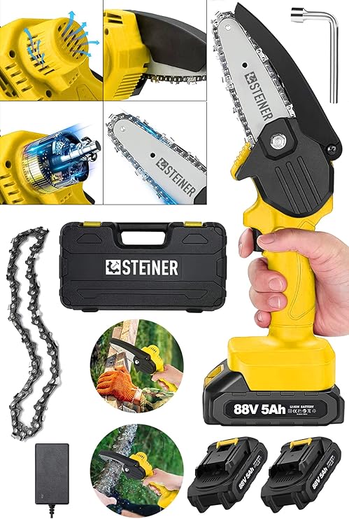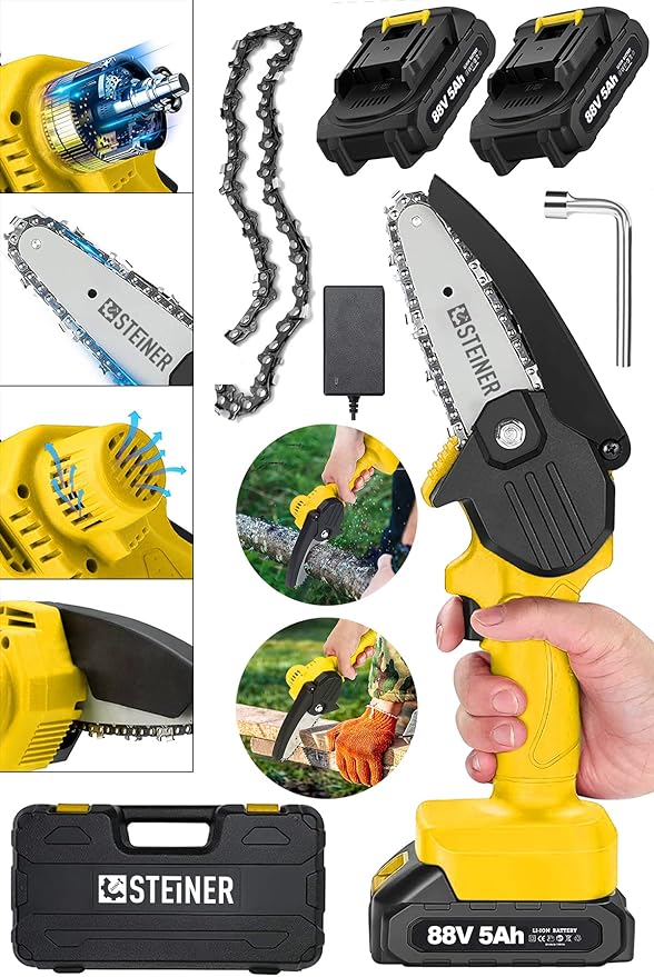 Yeni steiner 88 v şarjlı testere ile işler artık zor değil tek batarya ile 45 – 60 dakika çalışma imkanı şömine,mangal,soba ve benzeri alanlarda odun kesme ya da budama işlerinizi kolaylaştırmak için tasarlanmıştır