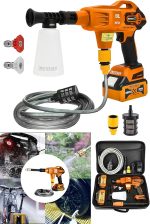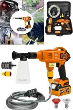 Alman 999 Vf 20 Ah 100 Bar Kömürsüz Şarjlı Oto Yıkama Makinesi Çift Akülü Bahçe Yıkama Makinası Turuncu