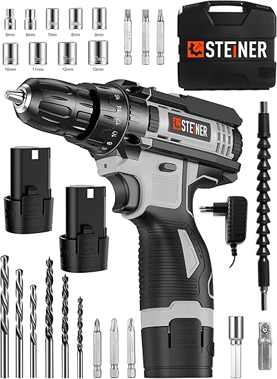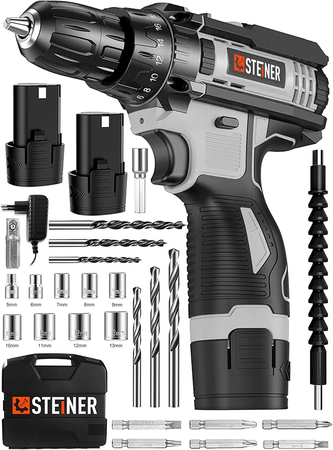 Alman Turbo Profesyonel 128 Vf 10 Ah Otomatik Korumalı Metal Şanzuman Çift Akülü Şarjlı Matkap + Set Gri