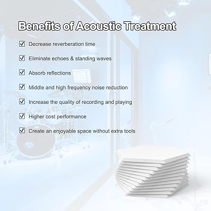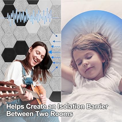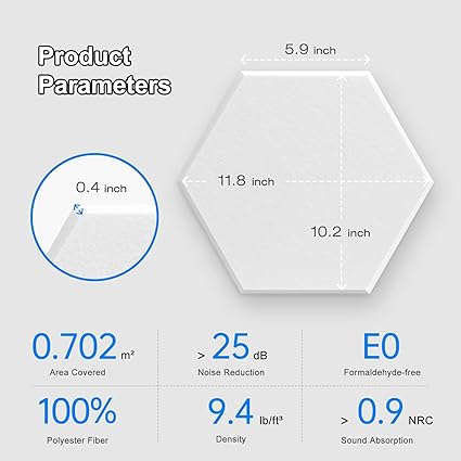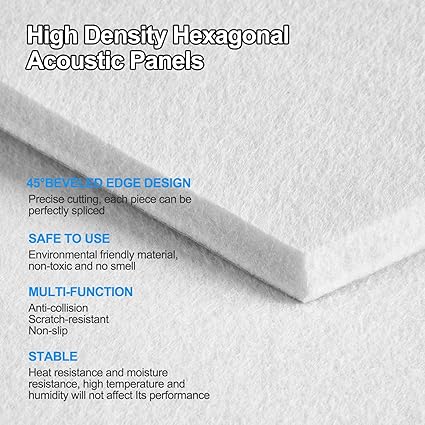 Altıgen akustik plakalar, ses yalıtım duvarı, 12 adet, yüksek yoğunluklu akustik paneller, tavan/kapı/duvar dekorasyonu ve akustik işlem için, ses yalıtım plakaları (30 x 26 x 0,9 cm)