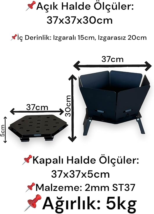 Altıgen Ateş Çukuru, Tam Katlanır Pratik Şömine Çantalı