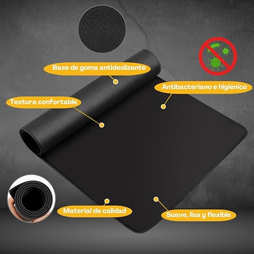 altlığı, fare altlığı XXL 900 x 400 x 2 mm, oyun halısı, kaymaz kauçuk taban, mikrofiberli paspası, ofis aksesuarları (Siyah) (Siyah 900 mm x 400 mm)