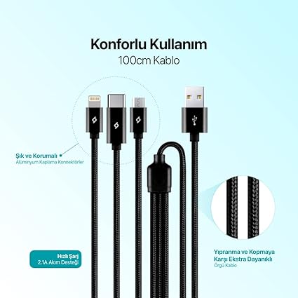 100CM Lightning – Type-C – Micro USB – USB-A kablosu