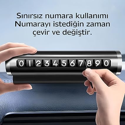 Alüminyum Kasa Çevirmeli Araç İçi Park Telefon Numaratörü Siyah Parkmatik Park Telefon Numarası Torpido Üstü Araç İçi İletişim Yazısı Parkmatik
