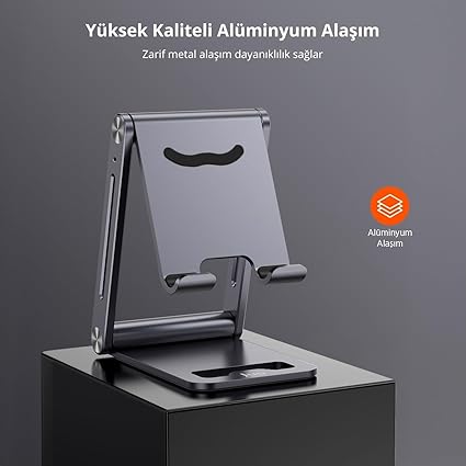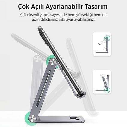 Alüminyum Katlanabilir Metal Masaüstü Telefon Tutucu Standı Uzay GrisiAlüminyum Katlanabilir Metal Masaüstü Telefon Tutucu Standı Uzay Grisi