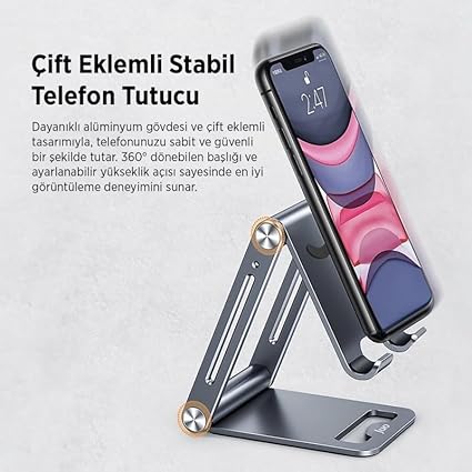 Üstün Malzeme Kalitesi Premium alüminyum telefon tutucu, dayanıklı metal yapısı ve özel kaymaz silikon pedleriyle telefonunuzu güvenle tutar. Masaüstü telefon tutacağı, yüksek kaliteli malzemesiyle uzun ömürlü kullanım sağlar.