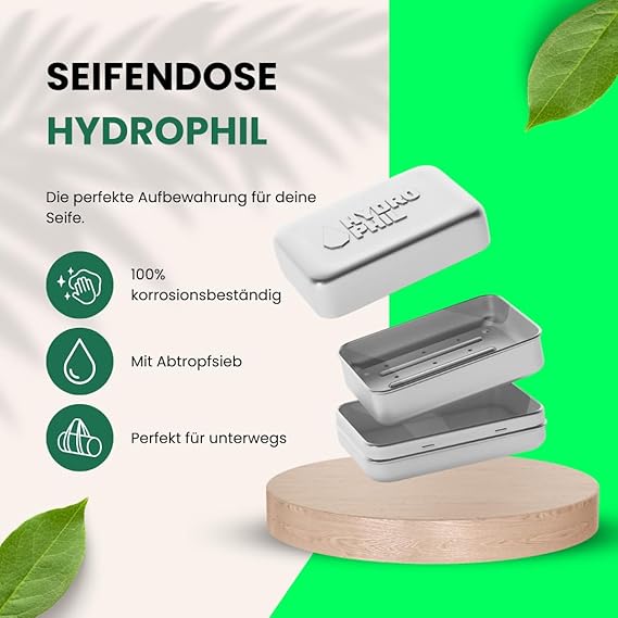 Paslanmaz alüminyum: Sabun kutusu kaliteli ve uzun ömürlü alüminyumdan oluşur. Bu nedenle hafif, kırılmaz ve plastik içermez.