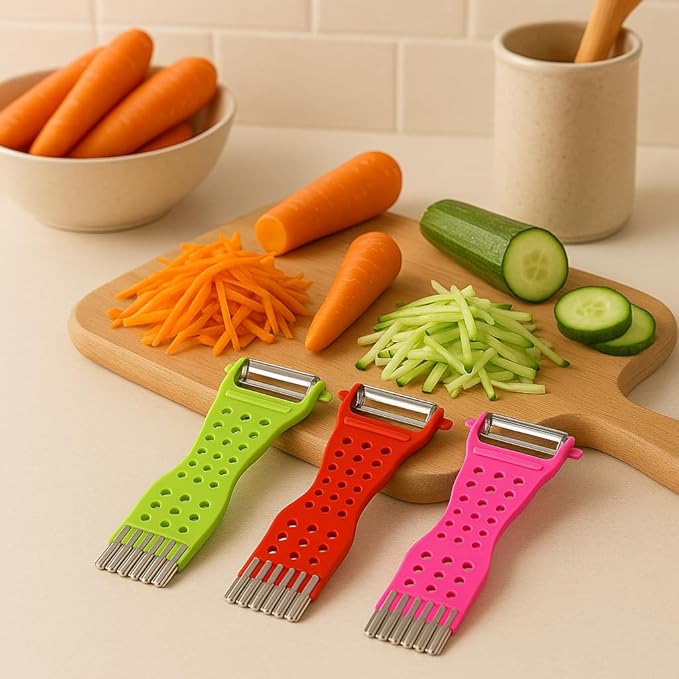 Amaçlı Renkli Sebze Soyucu ve Julienne Rende – Paslanmaz Çelik Bıçaklı, Ergonomik Tasarım, Patates Havuç Kabak İçin Pratik Mutfak Aleti