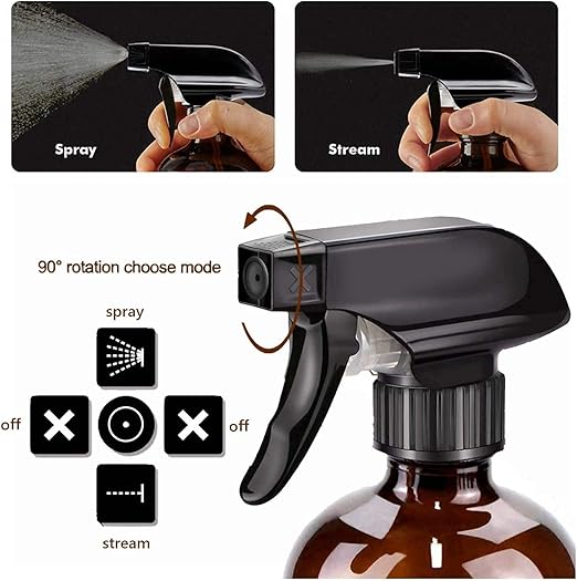 ➤ Amber Mister Püskürtücü — Paket, maksimum rahatlığınız için 2 adet 2 adet 250 ml amber cam şişe ve 2 adet siyah tetik püskürtücülü amber cam şişe içerir! Bu sprey şişesi dayanıklıdır, yeniden doldurulabilir ve tüm sprey şişesi uygulamalarınızda güvenle kullanılabilir.