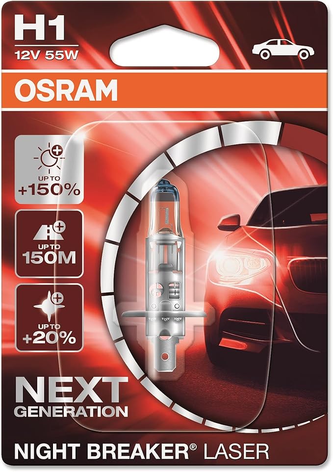 Ampul Night Breaker Laser H1 12V 55W%150’ye kadar Fazla Işık 150M’ye kadar Fazla Görüş Açısı,%20’ye kadar Beyaz Işık 64150NL-01B