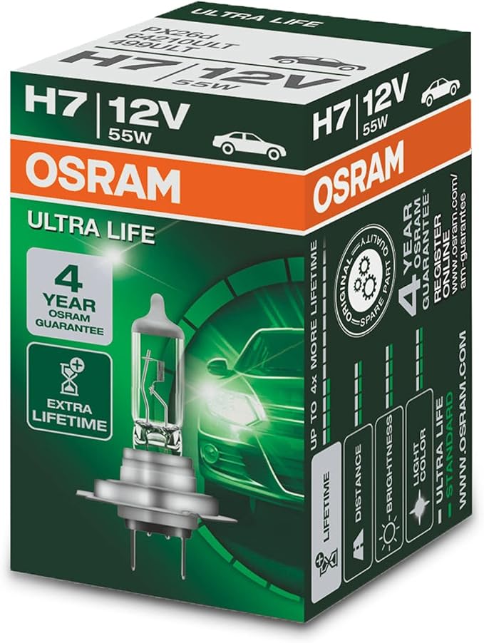 Ampul Ultra Life H7 12V 55W 4 yıl Garantili, Daha uzun kullanım süresi 64210ULT