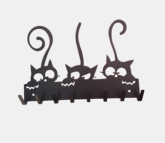 Anahtar Askılığı İster Kendinden Yapışkanlı İster Vidalı Kedicik Mat Siyah