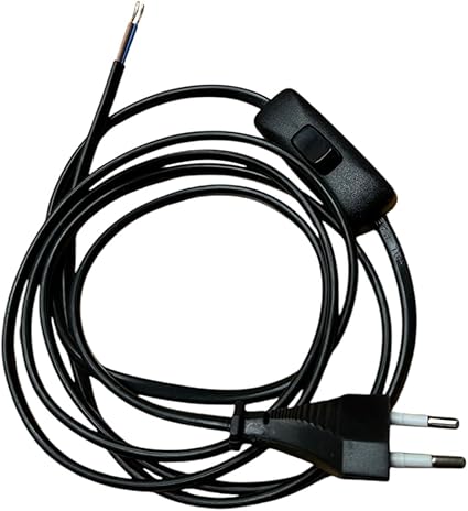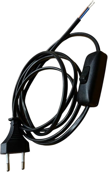 & Anahtarlı Arapuarlı Hazır Kablo | 2 Metre Siyah Uzatma Kablosu | 0,50 mm² Kesit | Aplik, Abajur, Masa Lambası, LED Trafosu ve Tuz Lambası İçin