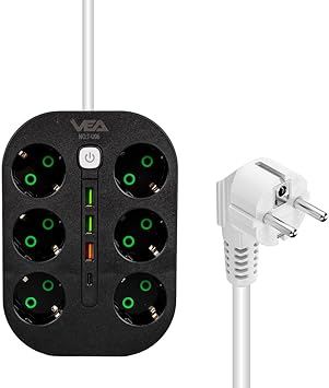 Anahtarlı Siyah Priz, 1.5 Metre Kablo, 3 x USB, 1 x Type-C PD Girişli, Grup Priz, 10ah Anahtarlı Priz, 2500W Güç, usbli,telefon sarjlı, Anahtarlı, Topraklı,