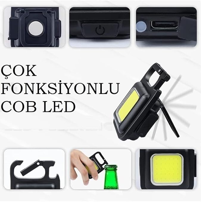 Anahtarlıklı Metal Kasa El Feneri Şişe Açacağı Usb’li Şarj Edilebilir Cep Boy Cob Led 800mah