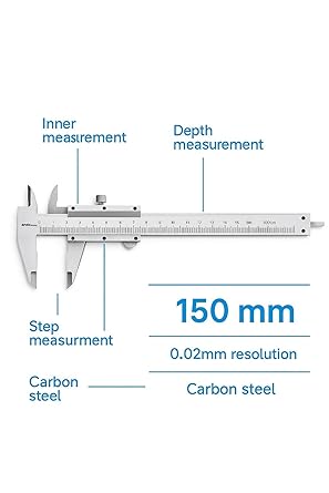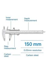 Analog Kumpas, 150 mm, 0.02 mm Hassasiyetli Ölçüm Aleti, Karbon Çelik Gövde, İç Dış Derinlik ve Step Ölçüm Uygunluğu ile Teknik Kaliper