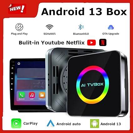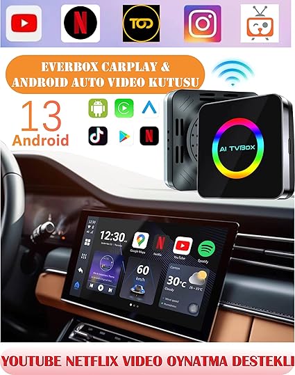 Android 13 CarPlay Android Auto AI Box, 4GB RAM 64GB ROM, Netflix YouTube Video Oynatma Destekli