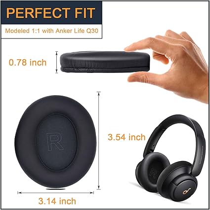 Anker Soundcore Life Q30 q30bt için Earpads Protein Deri ve Hafıza Köpüğü ile Yedek Kulak Yastığı Pedleri Soundcore Q30 q30bt için Yedek Kulak Yastığı Pedleri