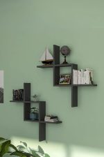 Antrasit 2’li Dekoratif Duvar Rafı – Duvara Monte Kitaplık