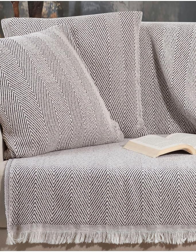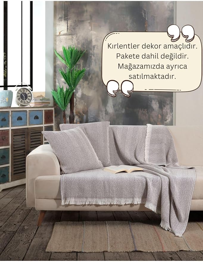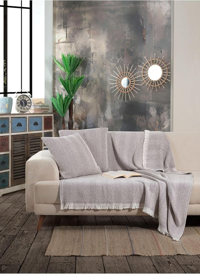 Antrasit Koltuk Örtüsü 150 x 200 cm Kanepe Çekyat Divan Örtüsü Şalı Pamuklu Püsküllü Antrasit 150 x 200
